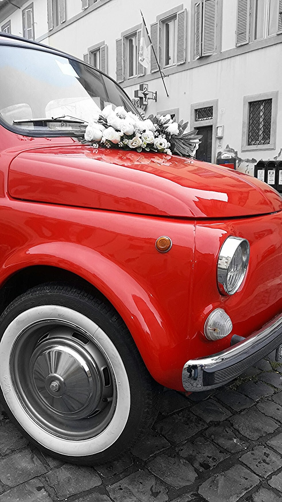 Ecco lei, la mitica, insuperabile, iconica 500 Fiat in tutta la sua irresistibile linea! Le sue ruote hanno solcato le strade del tempo e sono arrivate a voi direttamente dagli anni 60 per donarvi quel tocco vintage che daraÌ magia e dolcezza al vostro primo viaggio da sposini. La 500L, restaurata completamente mantenendo lâoriginalitaÌ di fabbrica, eÌ una graziosa bomboniera perfetta in ogni dettaglio, dagli interni in pelle bianca, dal tettuccio apribile e dai sedili reclinabili.
