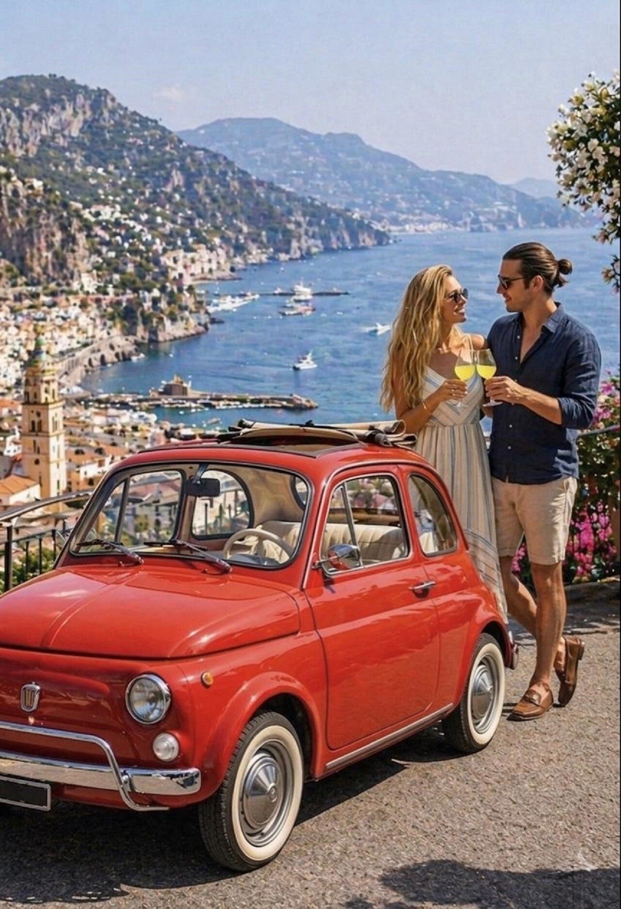 “La Dolce Vita Tour –(2 ore) Escursione privata in Fiat 500 d’epoca con rientro garantito al porto.”